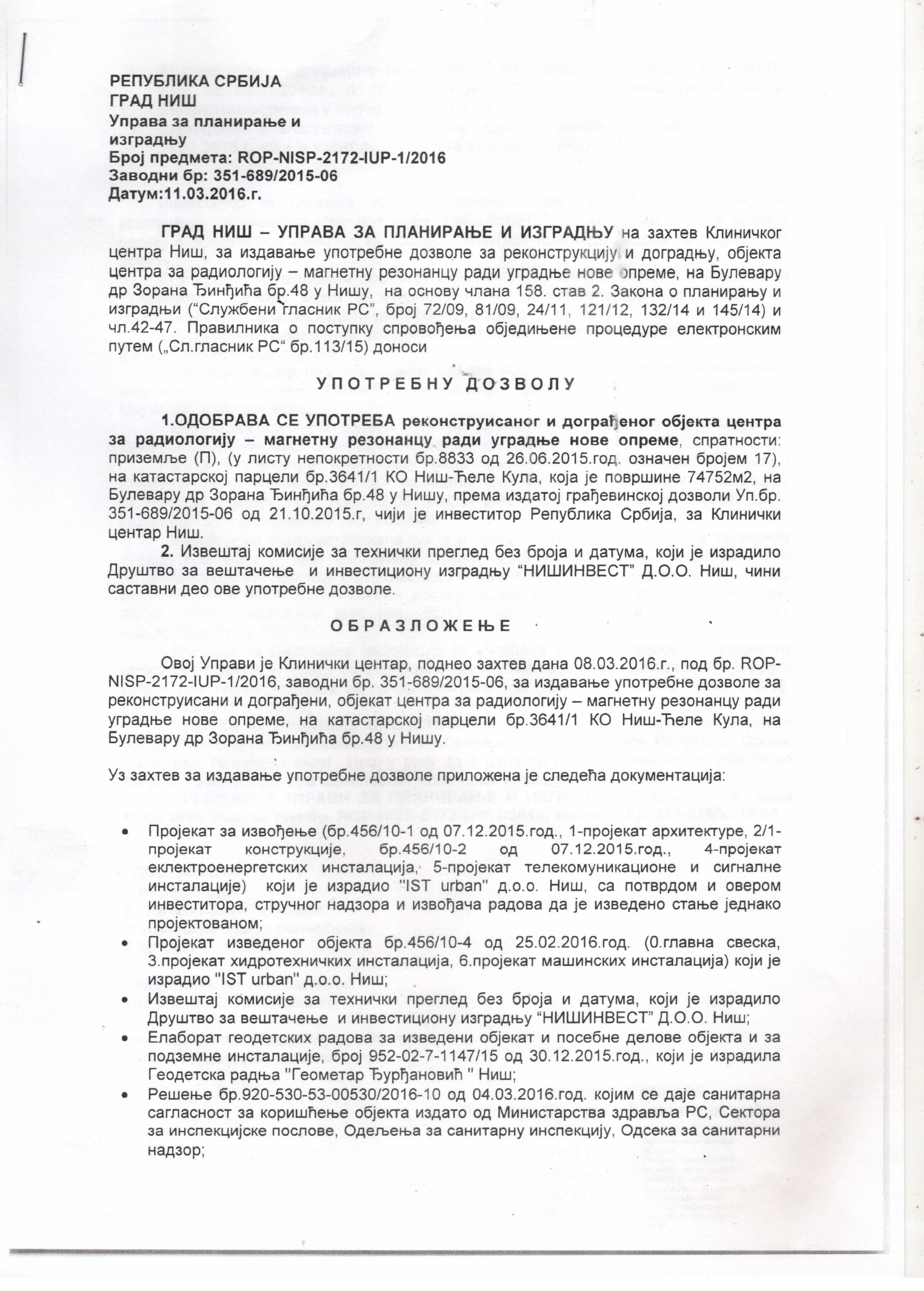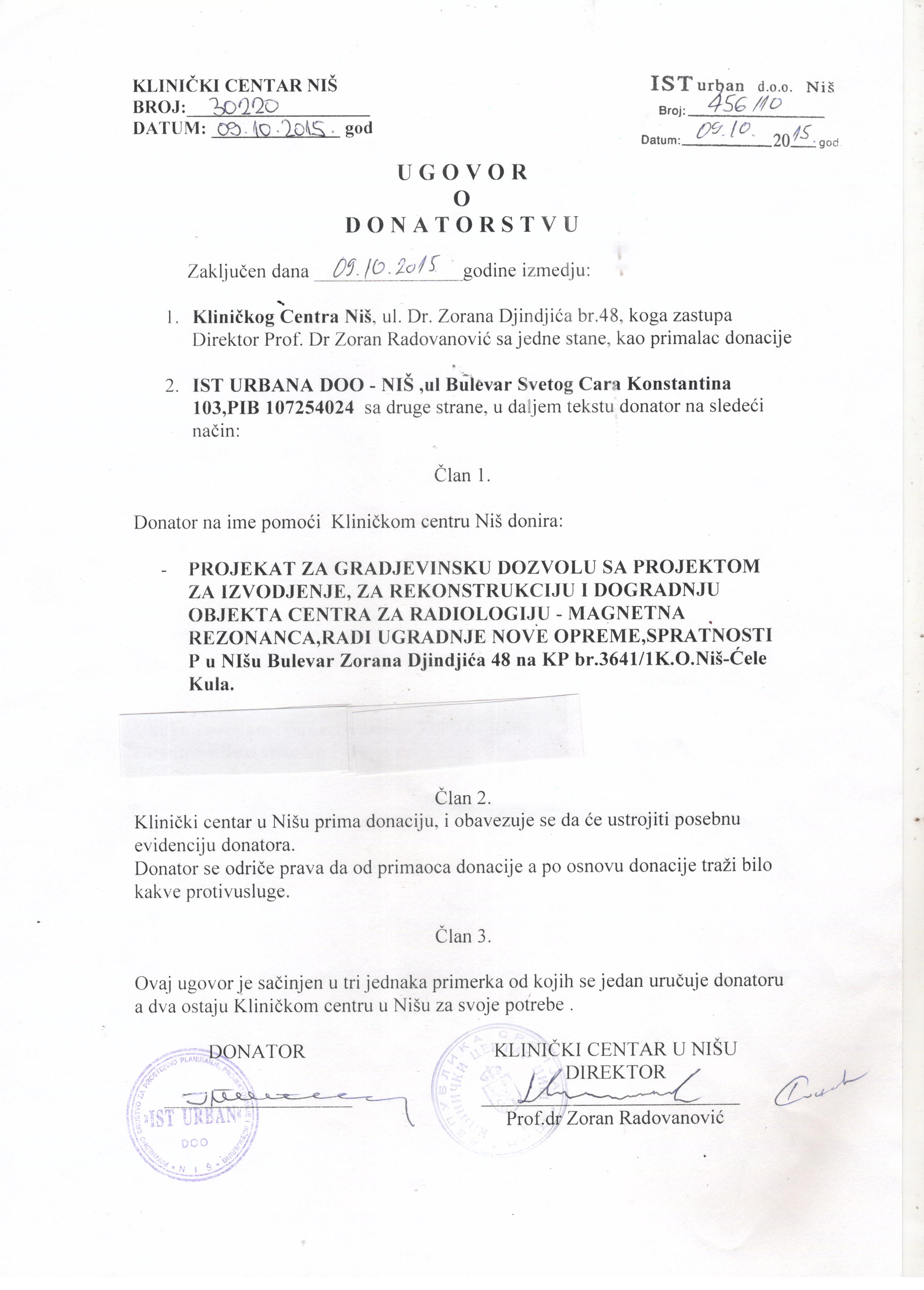 -Kompletnu tehničku dokumentaciju za izgradnju aneksa objekta za radiologiju-magnetnu rezonancu za ugradnju nove opreme (magnetne rezonance) u Kliničkom centru Niš