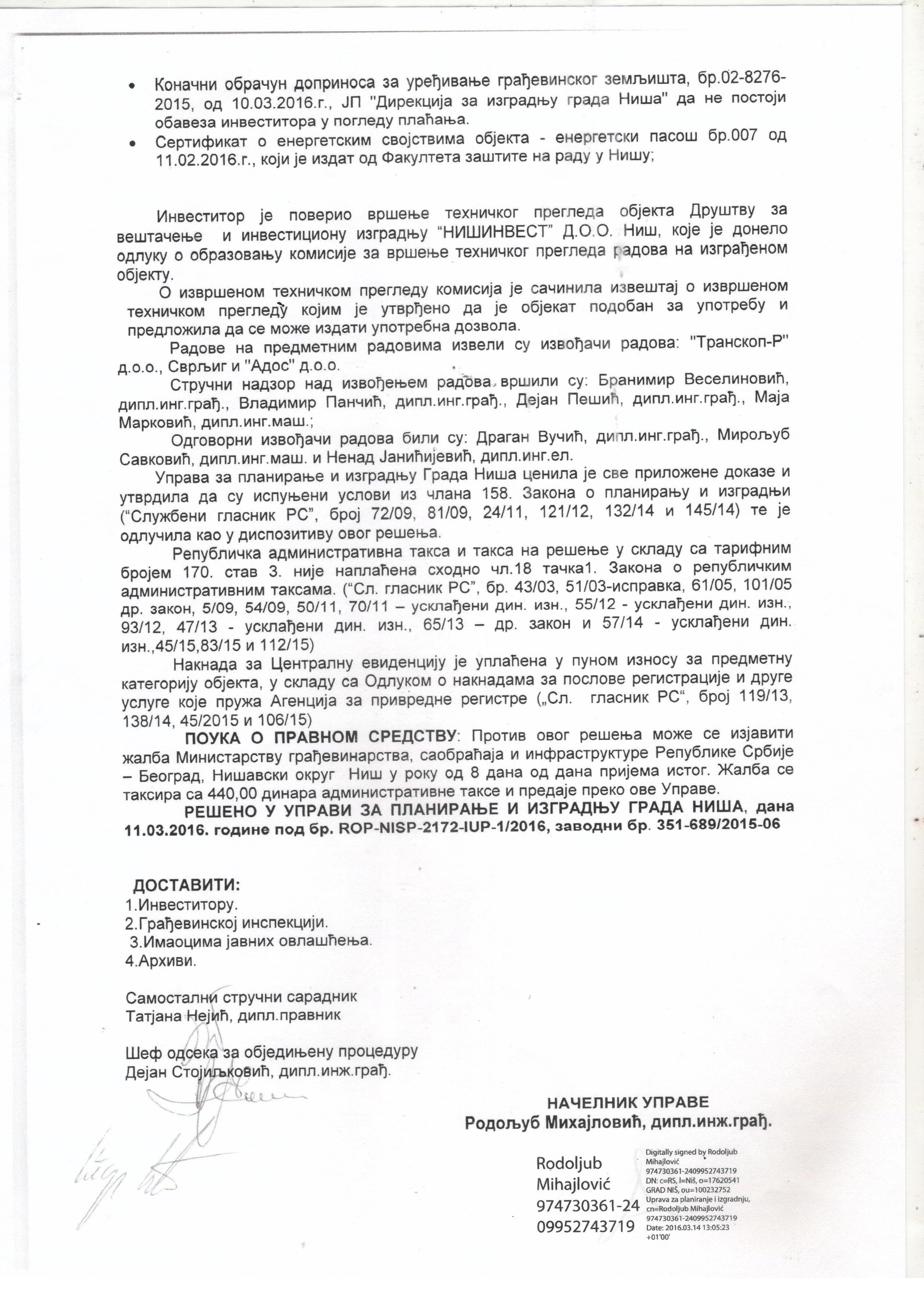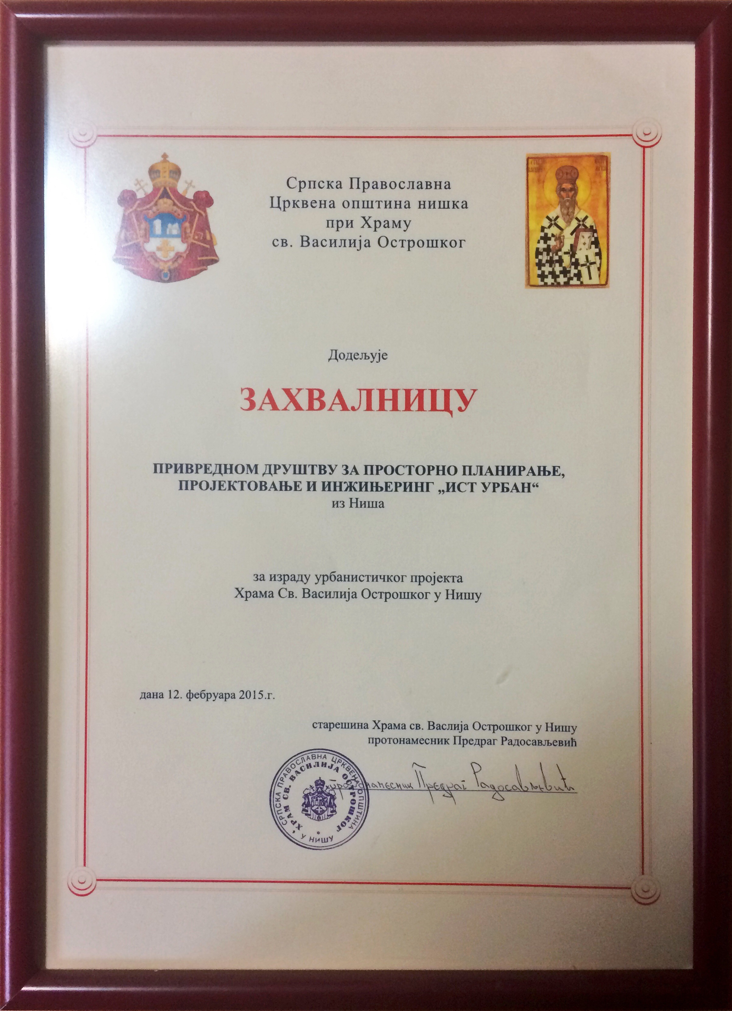 Sa ponosom i zadovoljstvom ističemo da su naša privredna društva u 2015.godini donirala:-Urbanistički projekat za izgradnju Hrama Sv.Vasilija Ostroškog u Nišu;